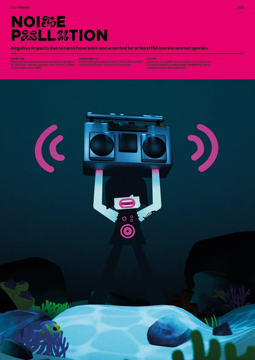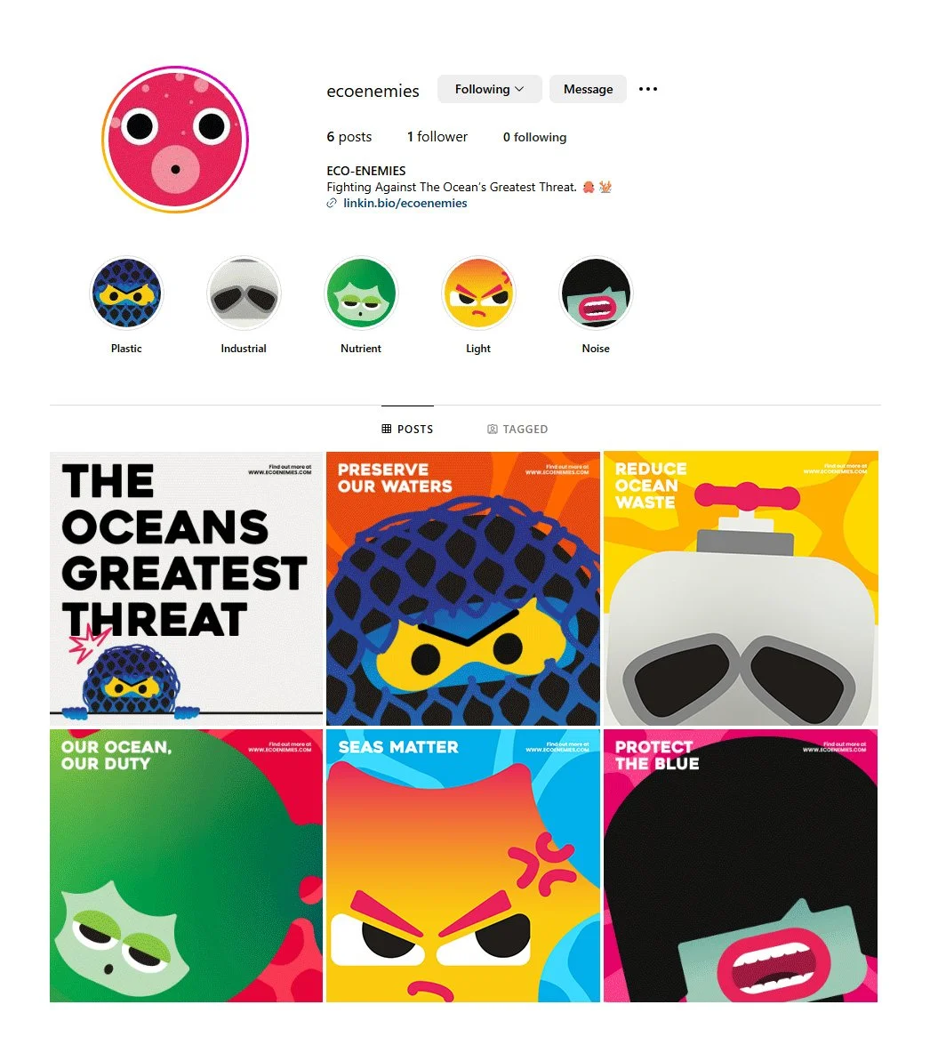 Due to pollution, our ocean’s health is rapidly deteriorating. Therefore, I designed an awareness campaign in response to this called Eco-Enemies. My approach was to create a set of villainous characters who each represent a type of ocean pollution. This campaign is aimed at children and young teens therefore it had to be visually exciting.
