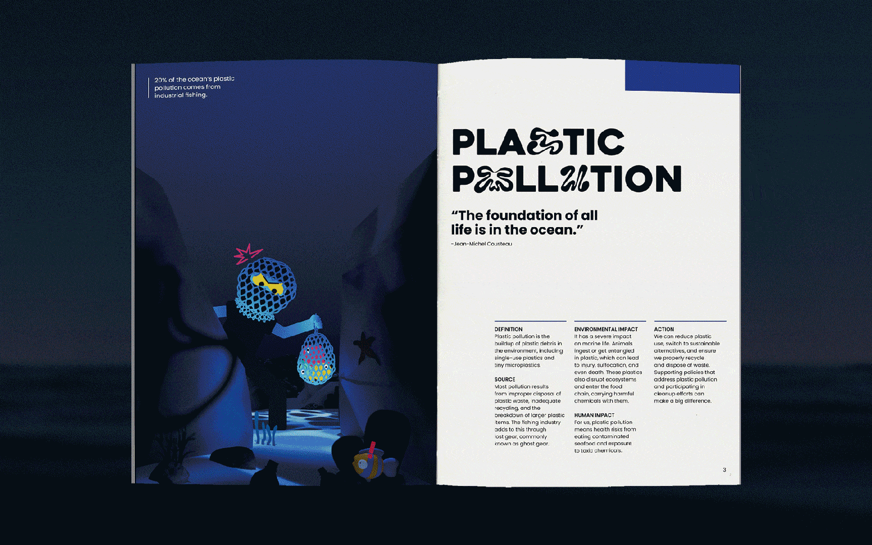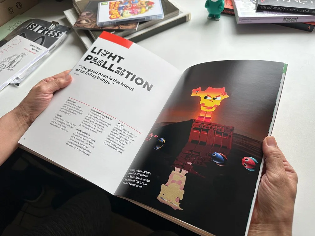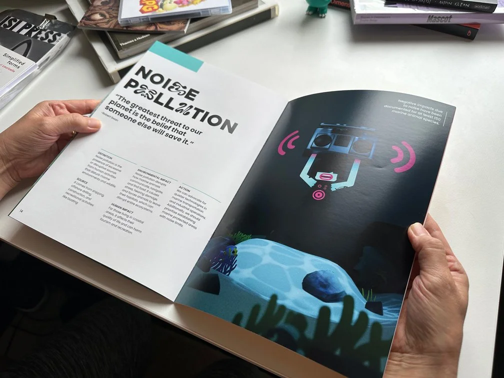 This project showcases an engaging booklet designed to inform and inspire action. The artwork is created through a mixed-media approach, blending 2D illustrations with 3D environments and incorporating a variety of materials, textures, and typographic techniques.